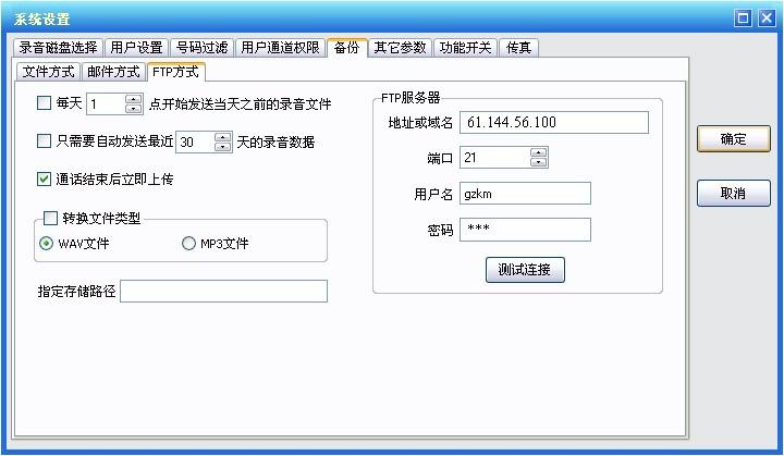 此功能需要在接收端的服務(wù)上安裝一個Serv-UFTP管理軟件,可以管理錄音文件的存放路徑及登錄的用戶名和密碼。