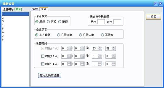 你可以針對某條電話線路,選擇壓控、聲控、鍵控,也可以針對某條線路,選擇來電錄音,去電錄音,來去電都錄音,還是不錄音。